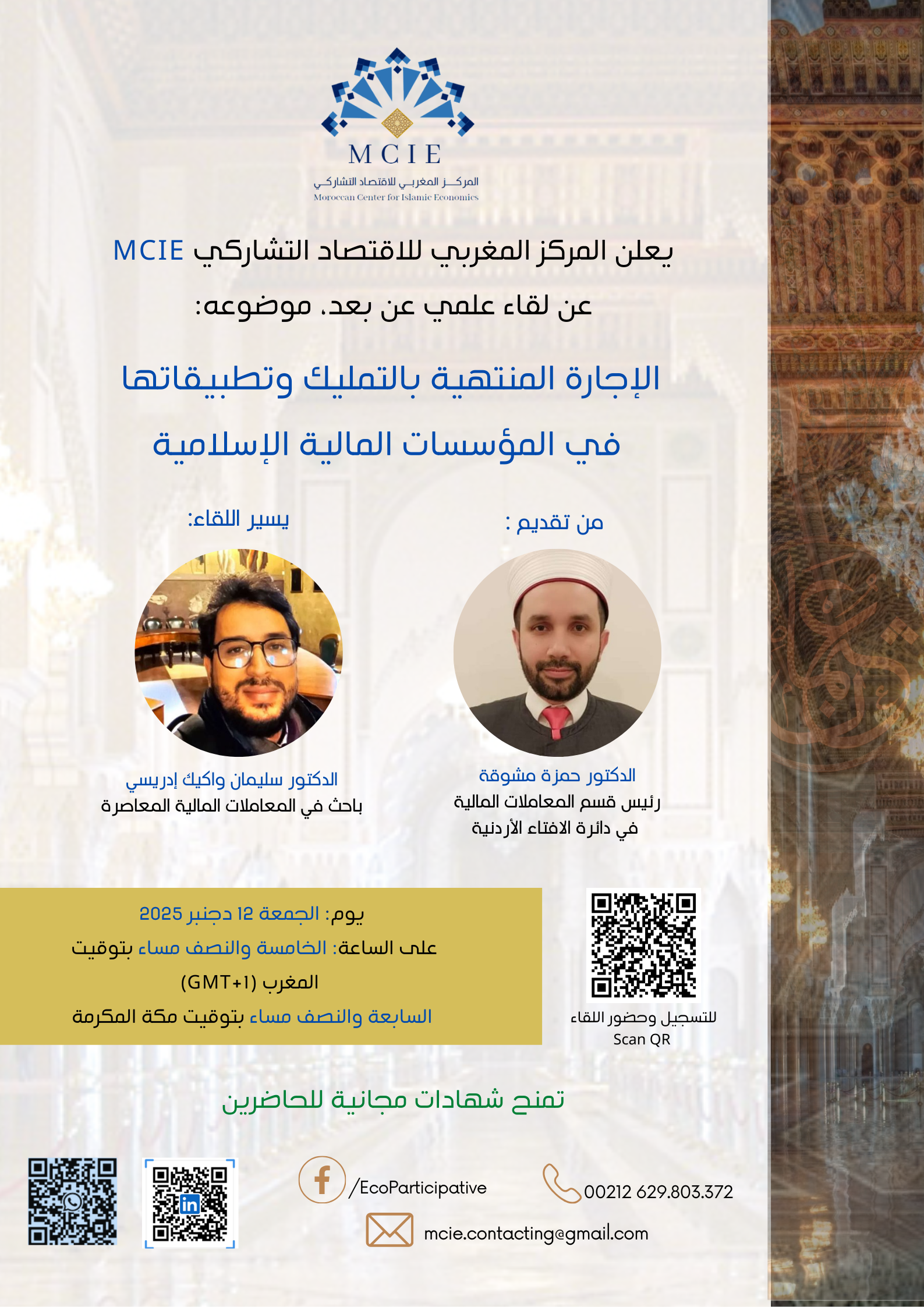 يعلن المركز المغربي للاقتصاد التشاركي MCIE عن تنظيم لقاء علمي عن بعد في موضوع: